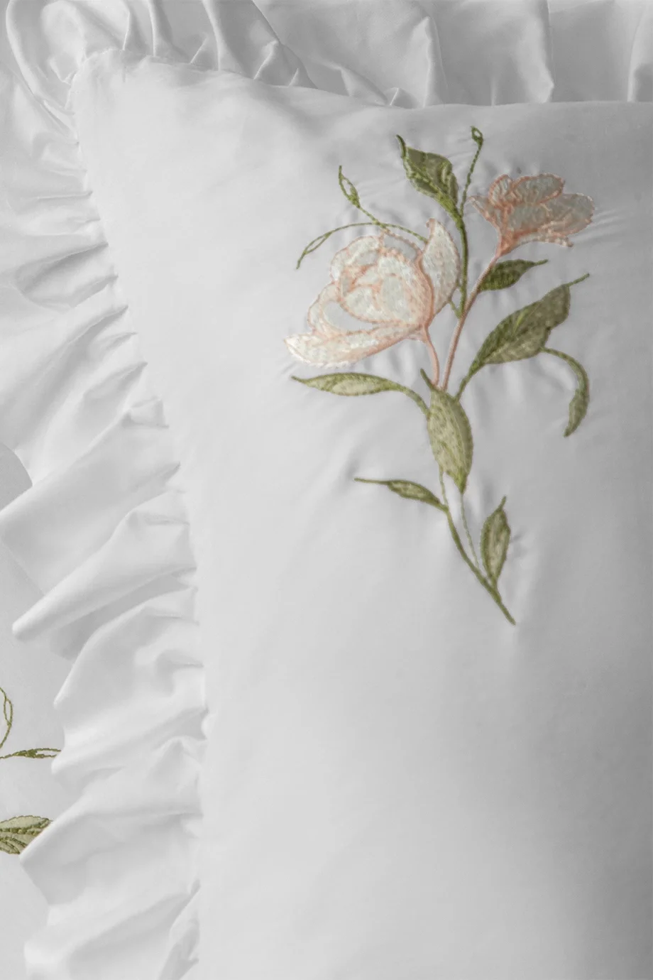 • Doğal %100 pamuklu kumaşıyla cildinize nazikçe dokunan bu nevresim takımımız, zarif nakış detaylarıyla şıklığı ve konforu bir araya getiriyor. Yüksek kaliteli 300 TC (120 Tel) pamuk saten dokusu, yumuşaklık ve pürüzsüz bir uyku deneyimi sunarken, aynı zamanda uzun ömürlü kullanım sağlar. Pamuk, doğal ve nefes alabilir yapısıyla gece boyunca serin ve kuru kalmanızı destekler. Nakış işlemesi, takıma zarif bir dokunuş katarken, her bir detay özenle işlenmiş olup, yatağınıza sofistike bir görünüm kazandırır. Hem konfor hem de estetik arayanlar için ideal bir seçenek.